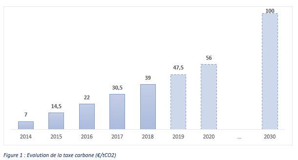 Un premier moyen de donner un prix au carbone est d’instaurer une taxe sur la consommation des énergies fossiles. En France, la taxe carbone, appelée également Contribution Climat-Energie, a été mise en place en 2014. Elle est intégrée aux taxes intérieures de consommation (TIC), proportionnelle au contenu carbone des combustibles fossiles concernés : GPL, essence, gazole, fioul, gaz naturel, charbon…